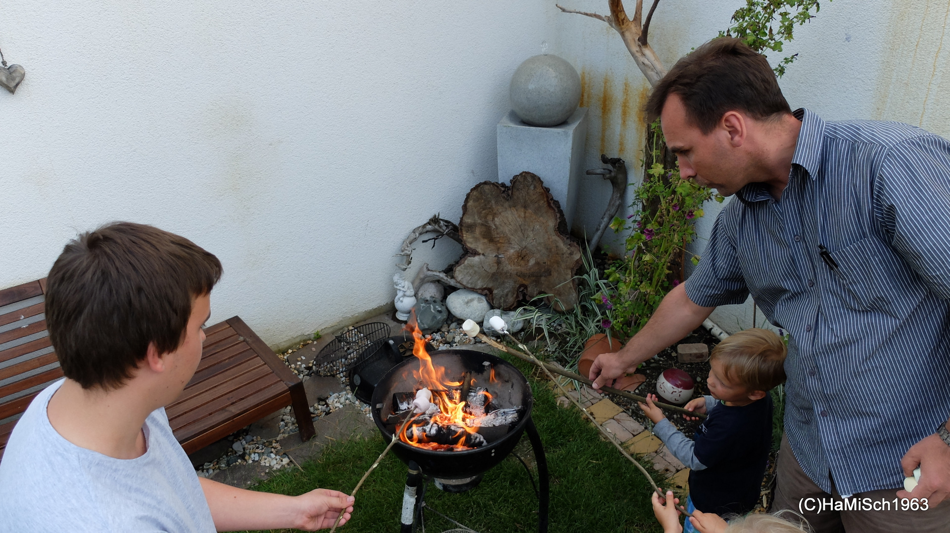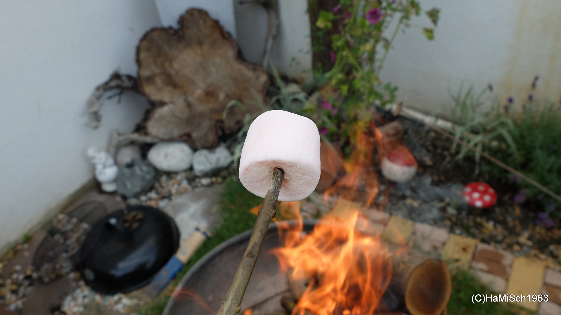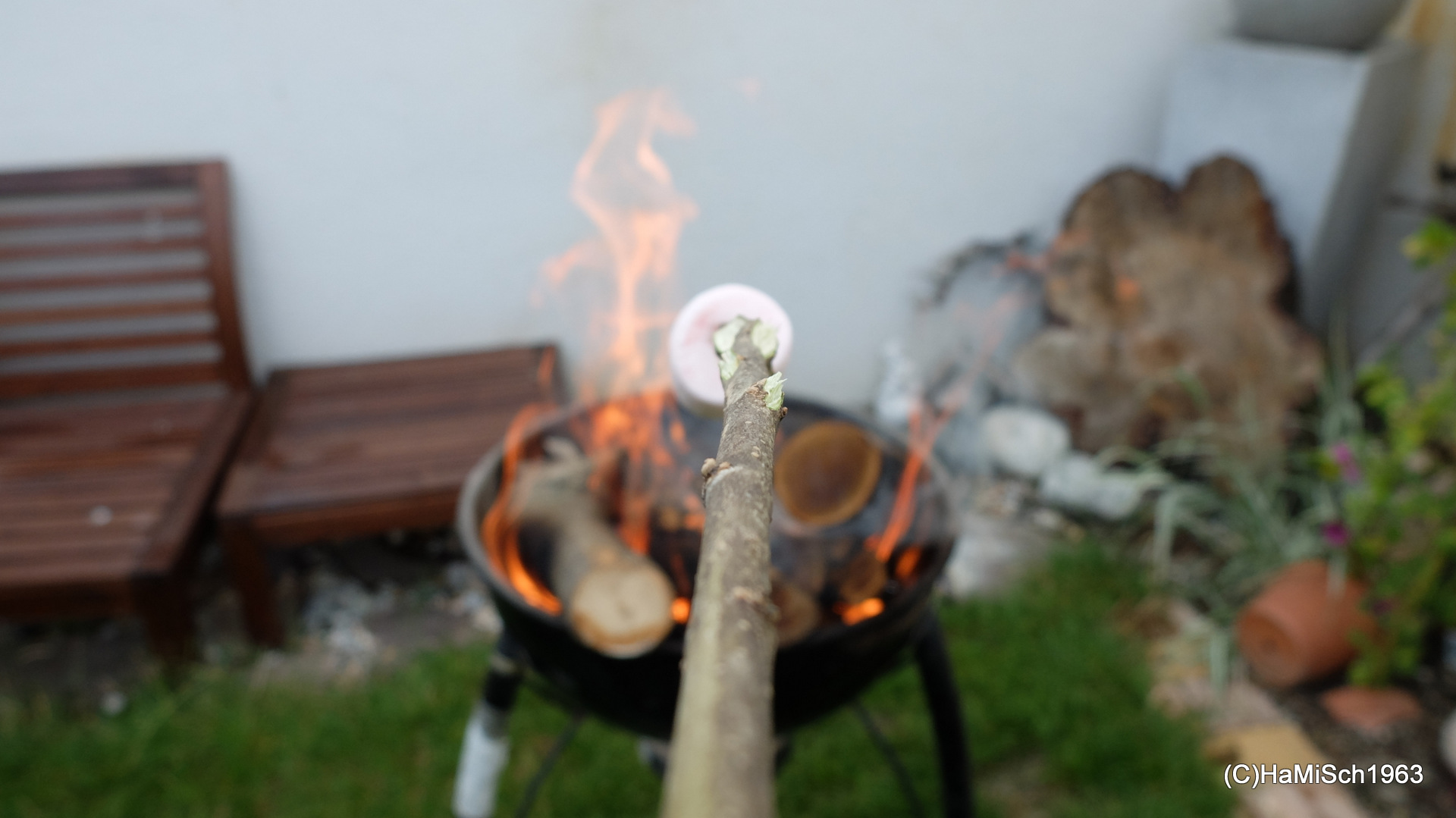 Schopf, Hühnerbrüste und Würstel direkt vom Grill, dazu frisches Baguette und eine Auswahl an Salaten, Herz (besser: Magen) was willst Du mehr? Danke an alle Koch- und Grillmeister(Innen)! Dann gab es auch noch eine mexikanische Kartoffelirgendwasspezialität 😉 bei dem jener Teil zwischen dem Rohen und dem Verkohlten ganz gut schmeckte! Kaffee, Schlagrahm, Roulade, Torte und Kuchen sowie Marshmallows und die Getränke nicht zu vergessen, Jede(r) wurde mit Genuss satt.