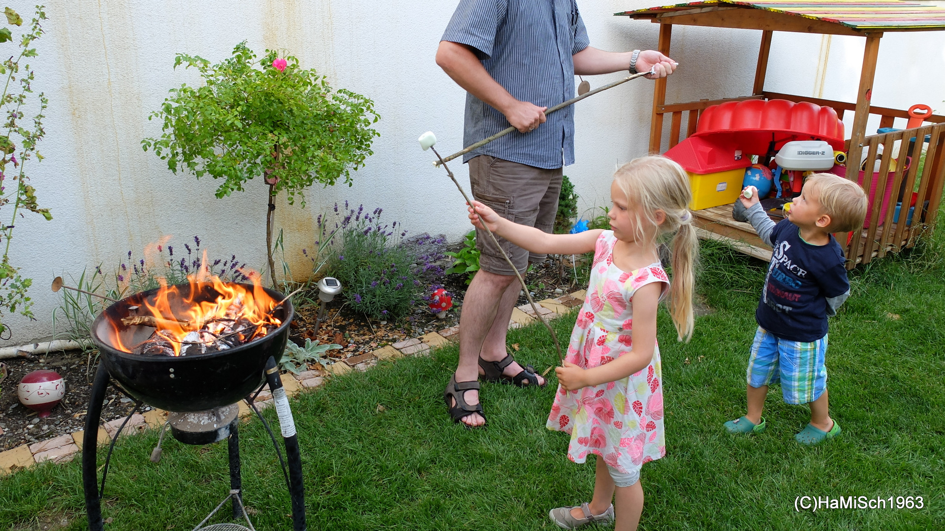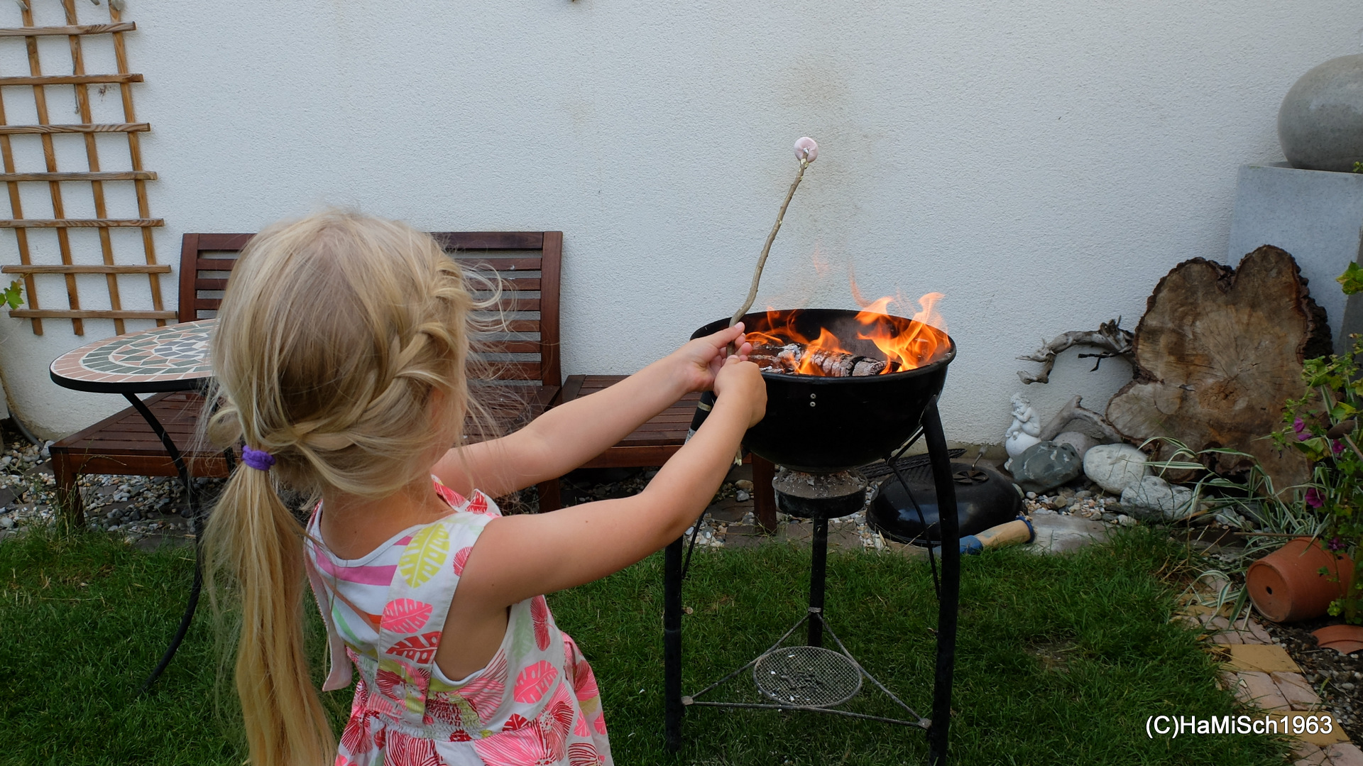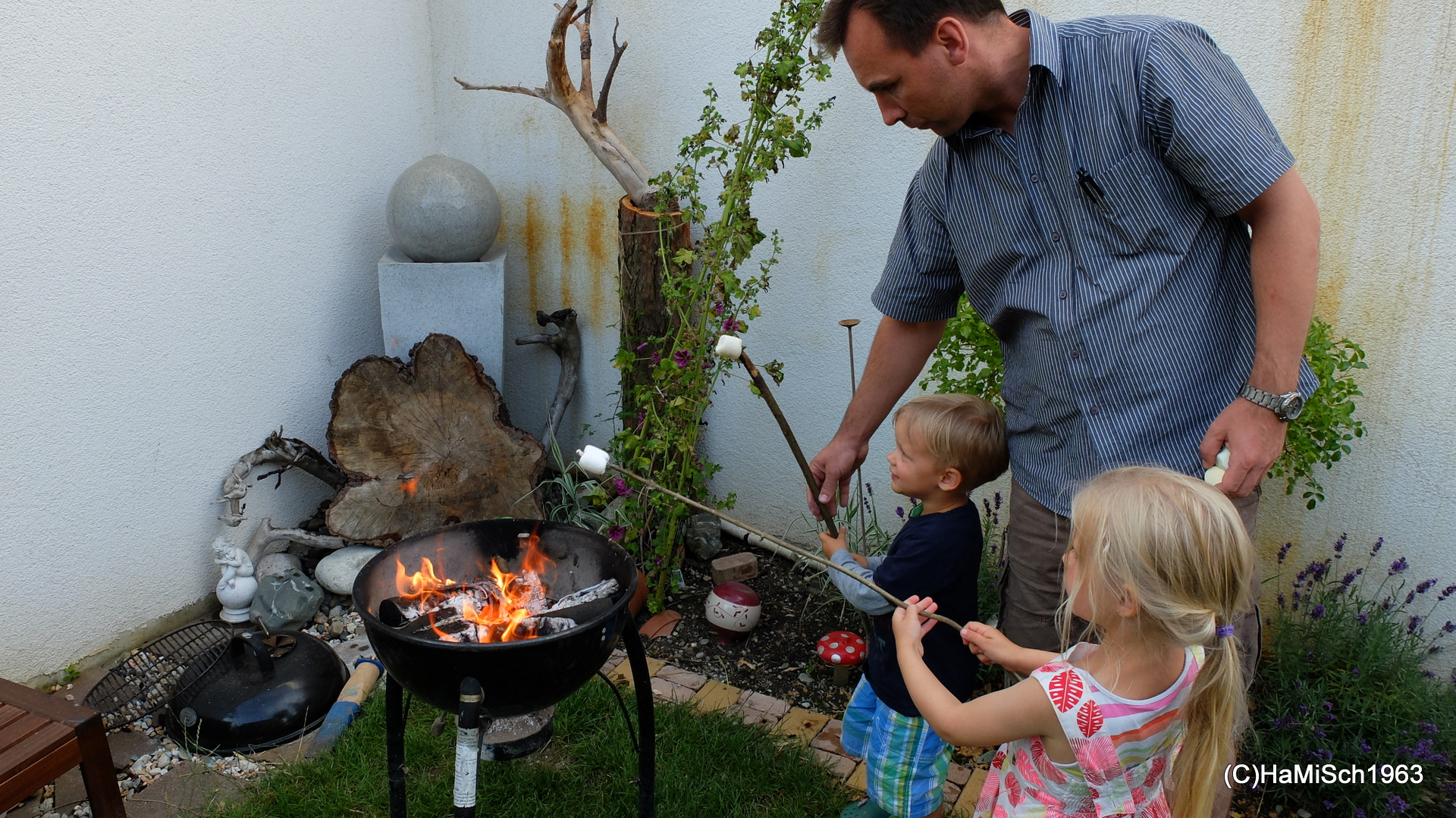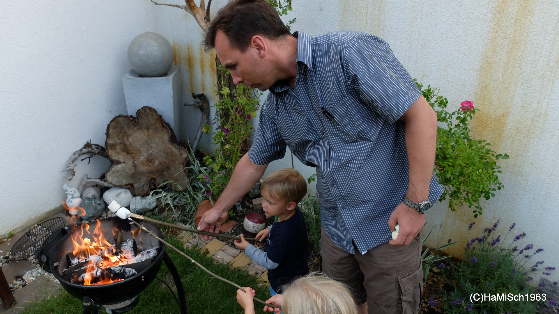 Schopf, Hühnerbrüste und Würstel direkt vom Grill, dazu frisches Baguette und eine Auswahl an Salaten, Herz (besser: Magen) was willst Du mehr? Danke an alle Koch- und Grillmeister(Innen)! Dann gab es auch noch eine mexikanische Kartoffelirgendwasspezialität 😉 bei dem jener Teil zwischen dem Rohen und dem Verkohlten ganz gut schmeckte! Kaffee, Schlagrahm, Roulade, Torte und Kuchen sowie Marshmallows und die Getränke nicht zu vergessen, Jede(r) wurde mit Genuss satt.