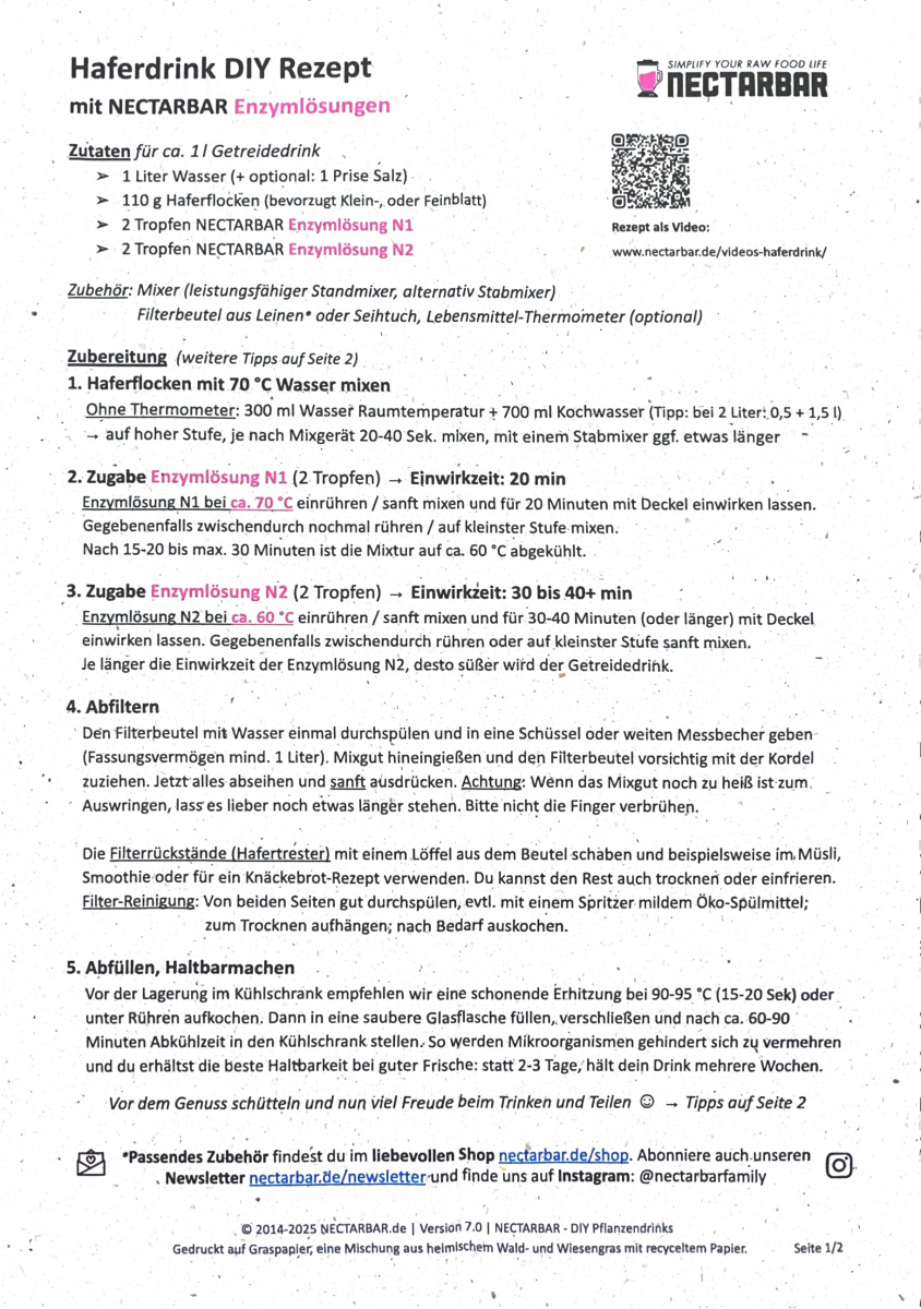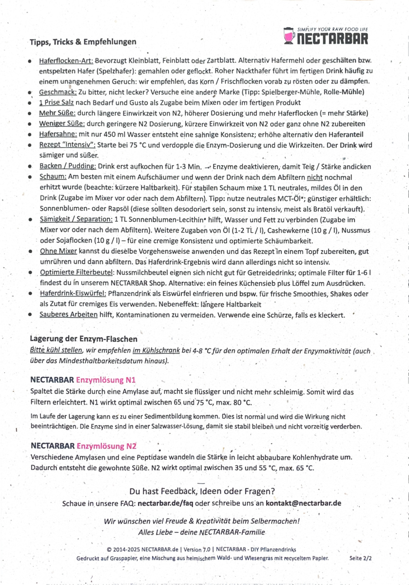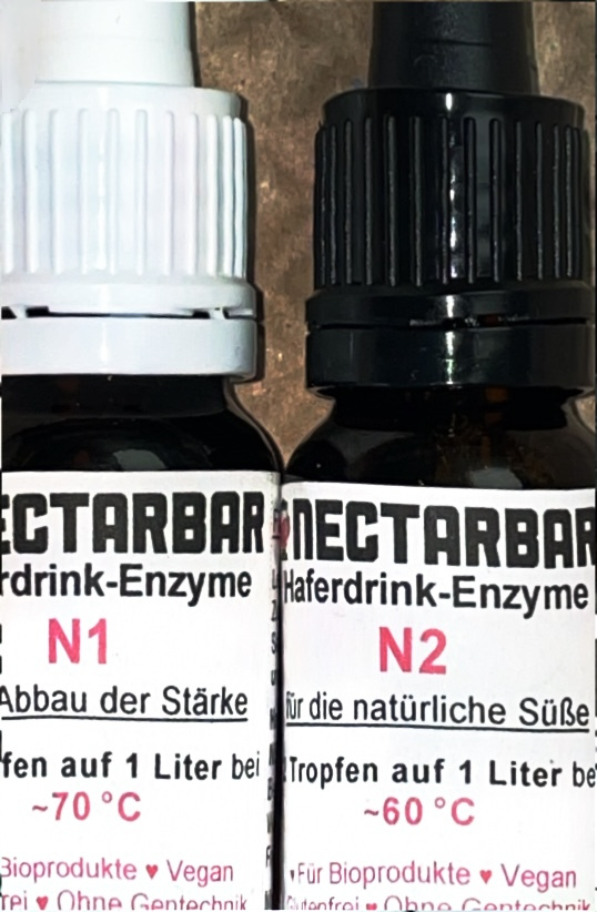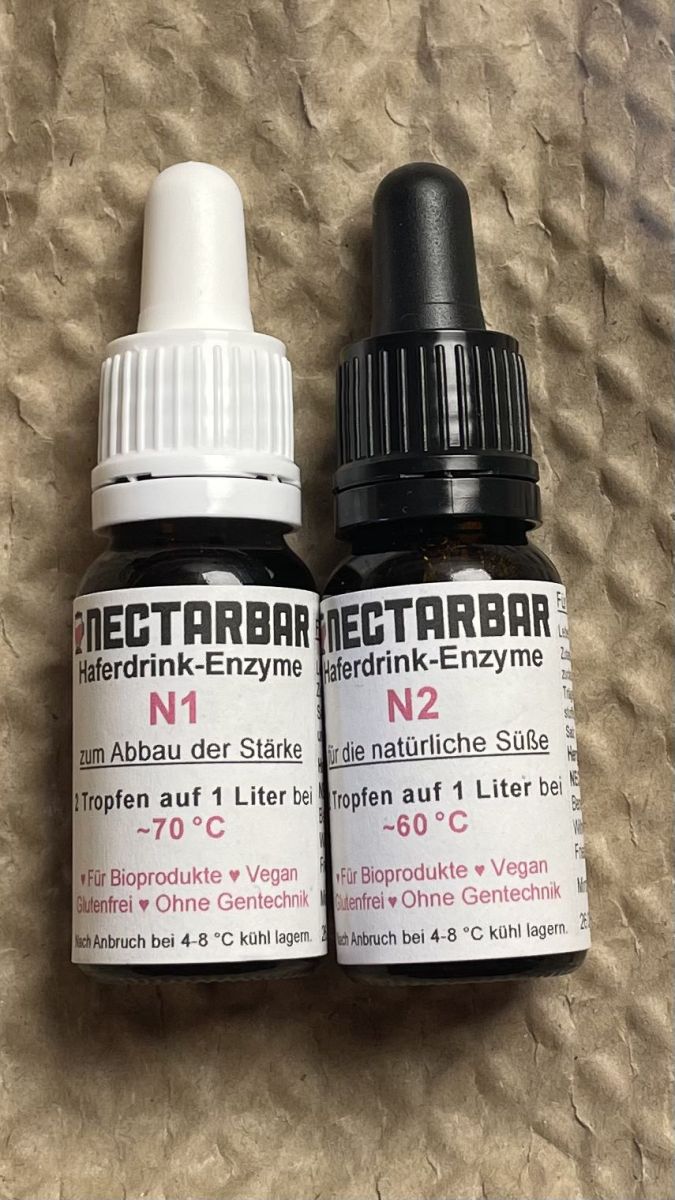 – 2 Tropfen der Nectarbar Enzyme N2 in die jetzt aufgespaltene Hafermilch geben
