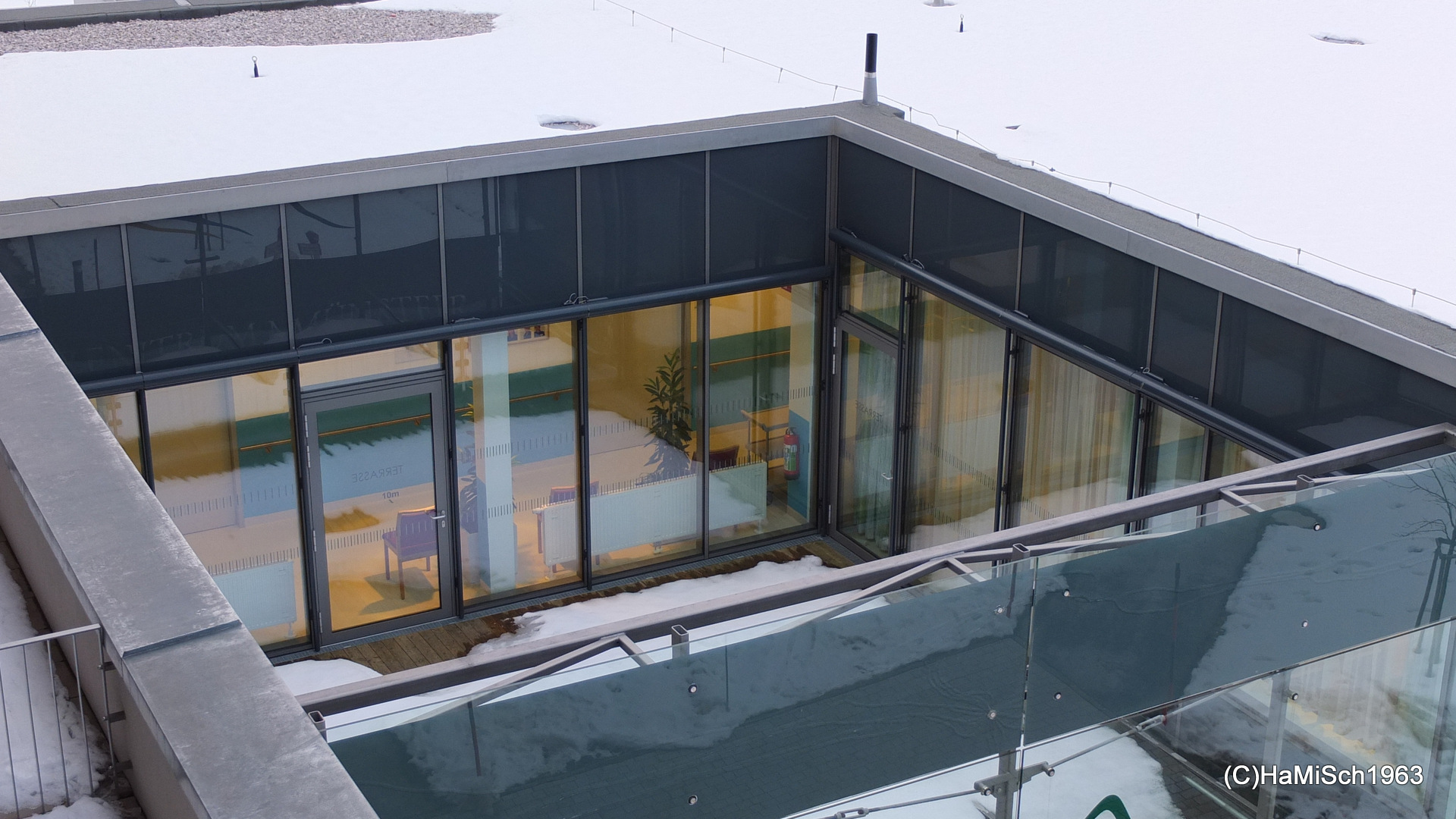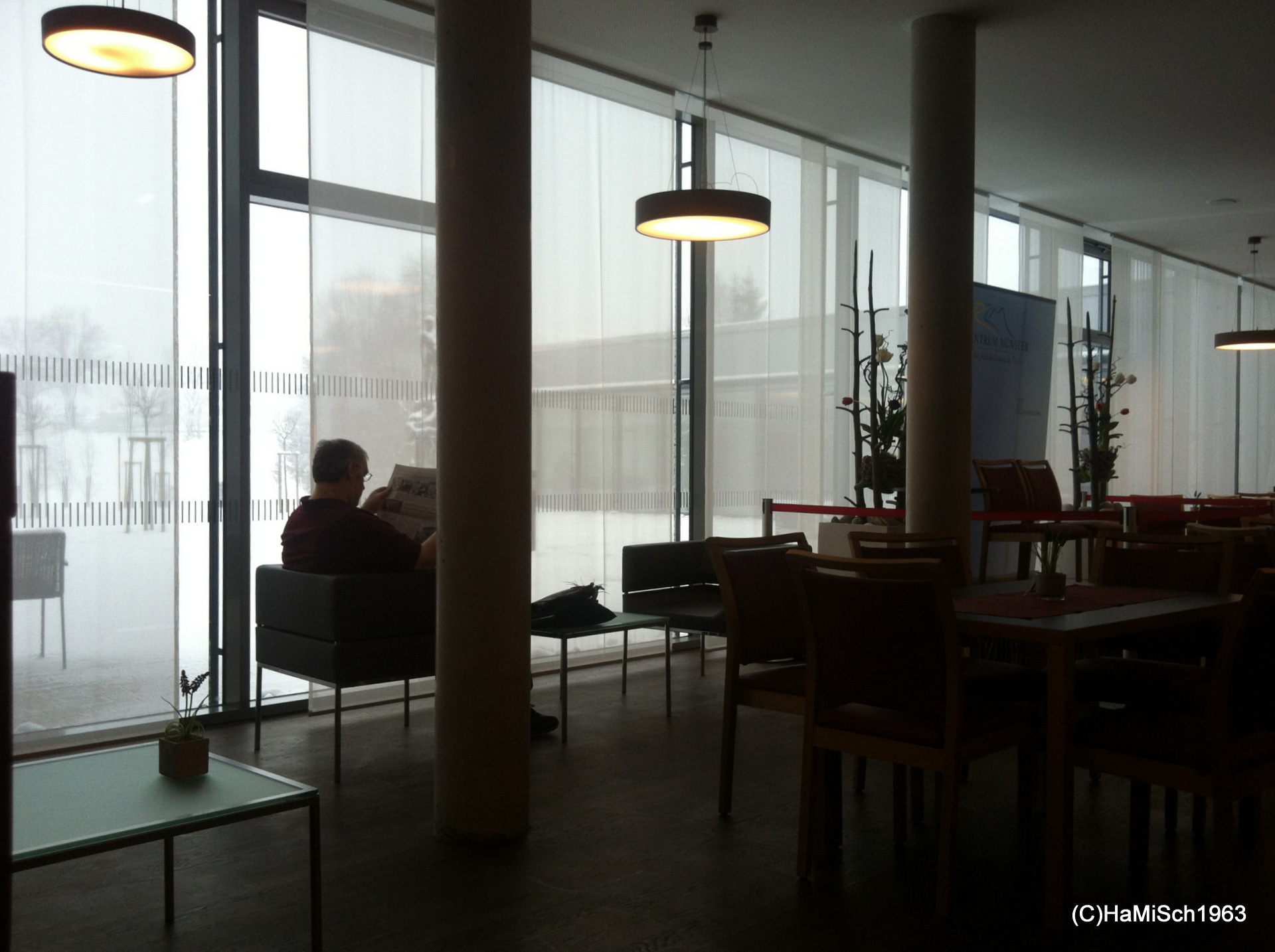 Mein persönlicher Eindruck war durchwegs positiv. Aus der Sicht des „Insassen“ in die gewaltige, wunderschöne Umgebung von Münster und des Inntals – ein Traum. Aus der Sicht des Spaziergängers auf den mitten ins Grüne gesetzten Quader – ein zu moderner, zu schlichter Glas-/Betonbau welcher eigentlich in eine Stadt gehört. Über Geschmack kann man streiten, muss man aber nicht. Ich war ja „Kundschaft“ dort und habe den größten Teil meiner Zeit im Inneren des Gebäudes verbracht – und das war schön!